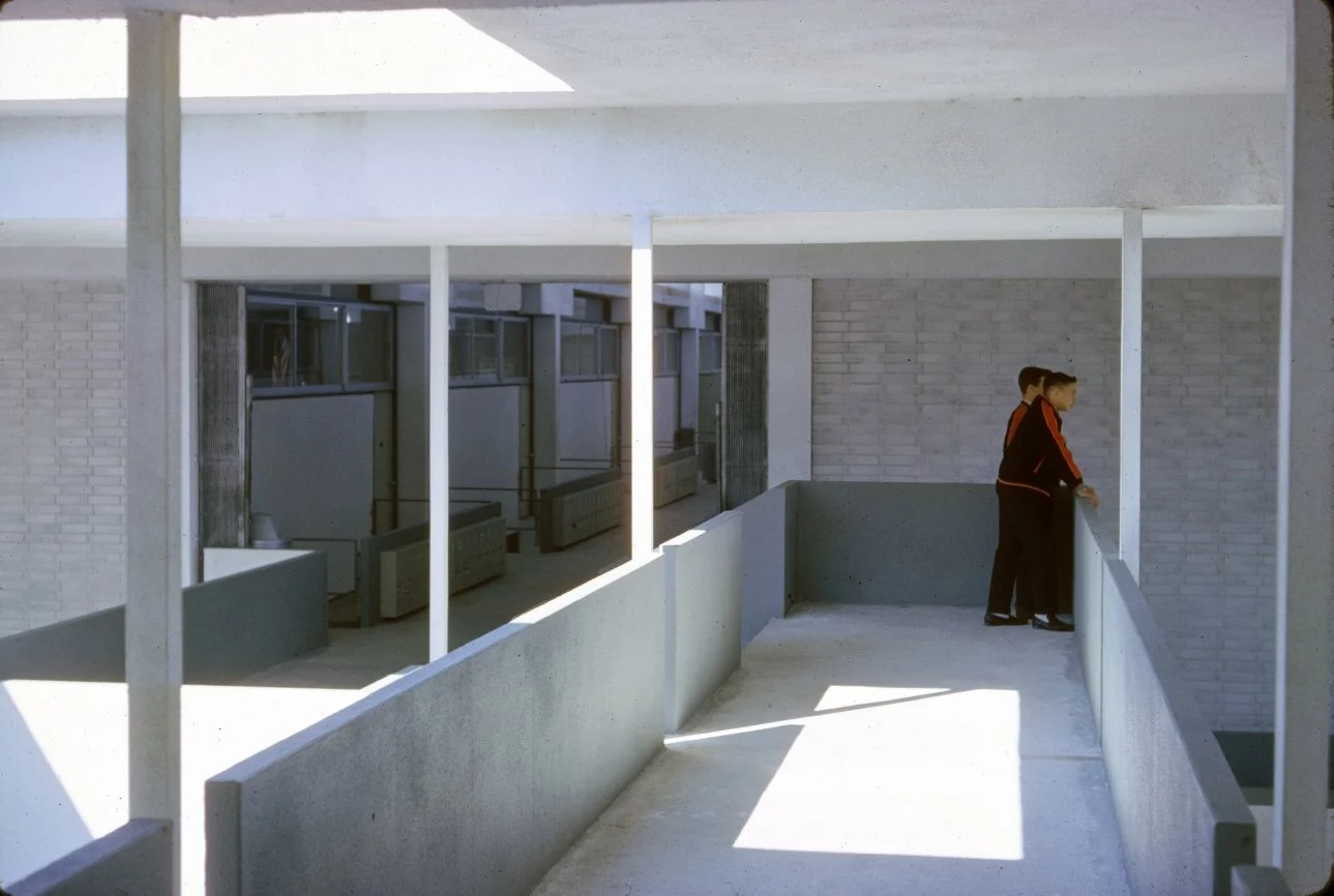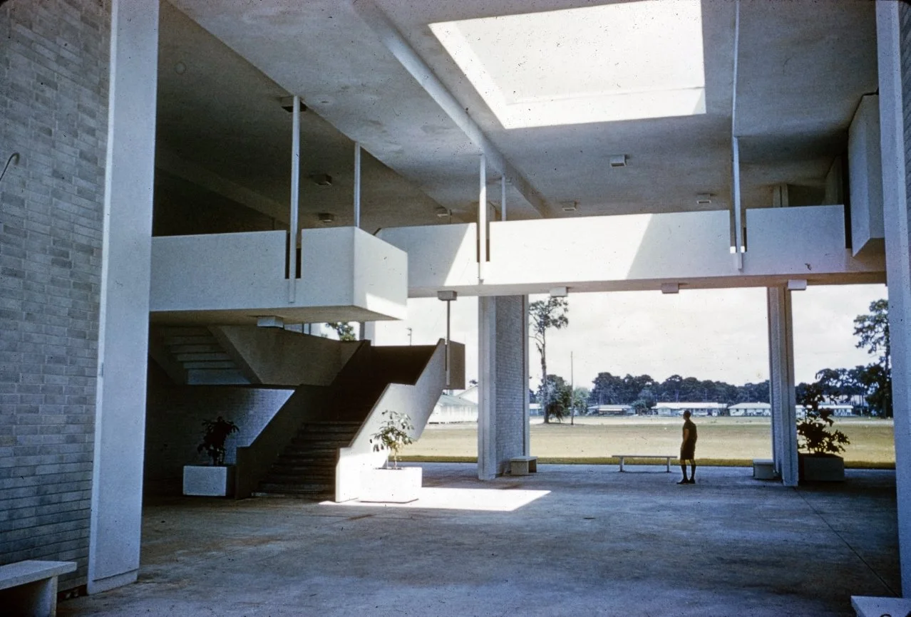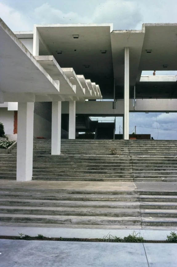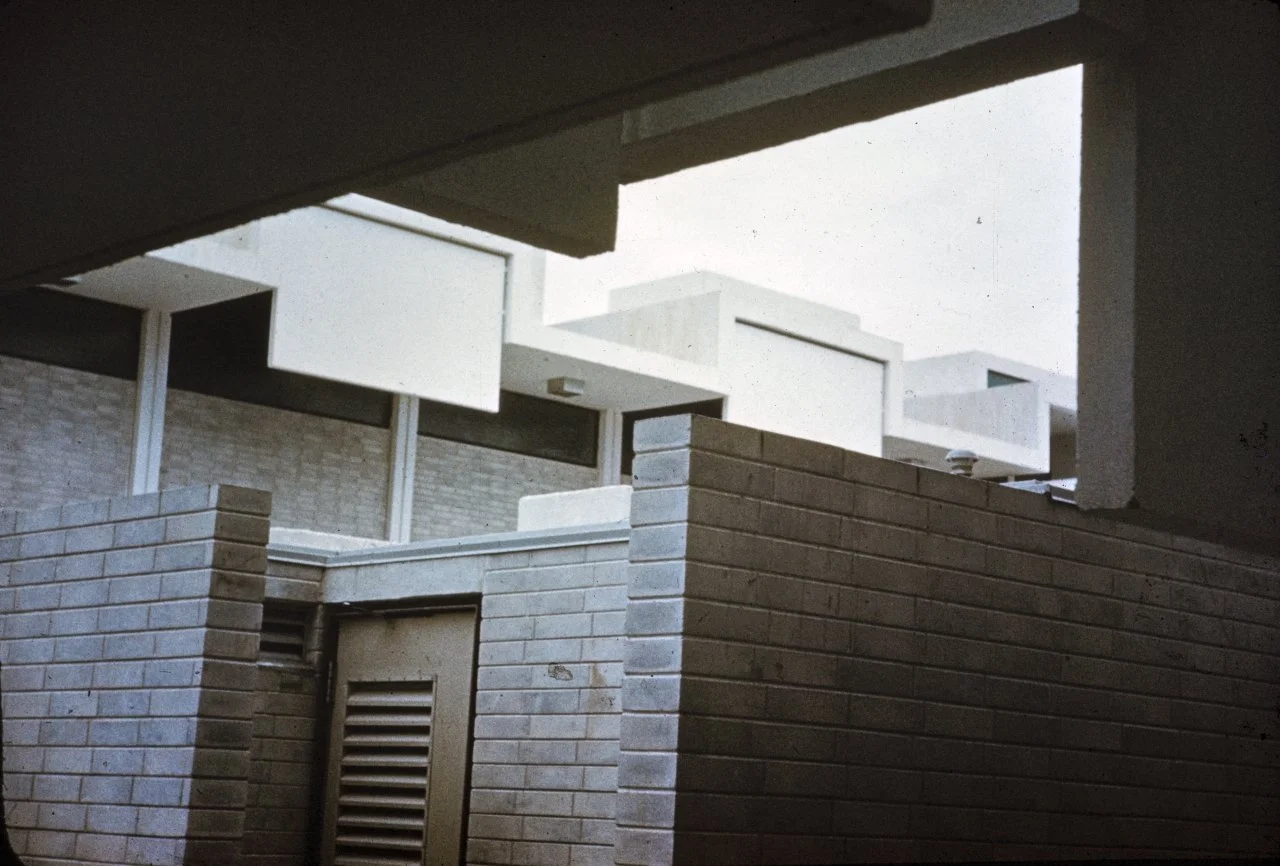 “The second Sarasota High School was a move from clear form, from clear structure, from lineal structural elements defining space, to the organization of planes in space. It depends much more on the space and the handling of light, which really meant planes rather than linear elements, which in turn commenced my investigations into scale… I’m affected by everything I see. I make no bones about it. I haven’t invented anything in my life. For instance, the entrance to the Sarasota High School can be traced directly to Corbusier’s High Court Building in Chandigarh.”