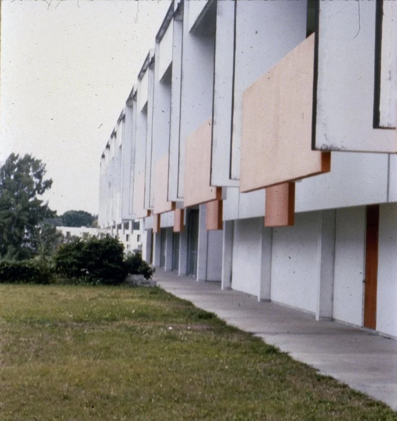 “Rather than underscore the mass of the structure and the volume (in the best Corbusian tradition), the architect seemed more concerned with the play of intersecting and parallel surfaces. This quality is emphasized in the way in which the brises-soleils are suspended out and away from the main volume instead of being integrated with it.”