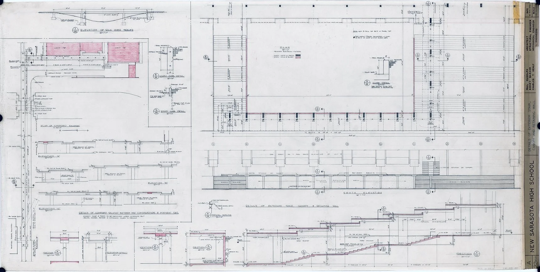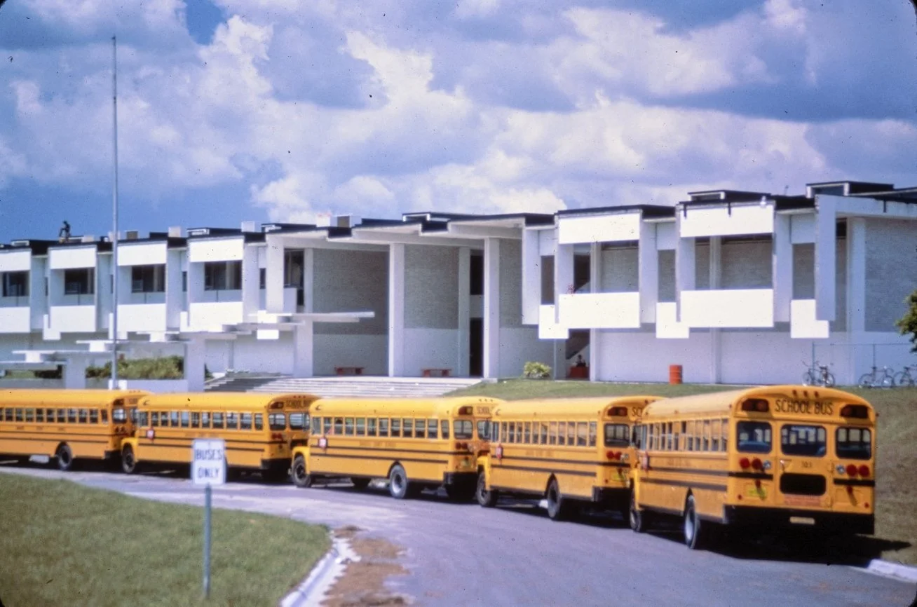 On January 20, 1959 final plans are presented at a meeting of the Sarasota County School Board by Rudolph office staff Bert Brosmith (1928-2015) and Edwin William de Cossy (1930-).