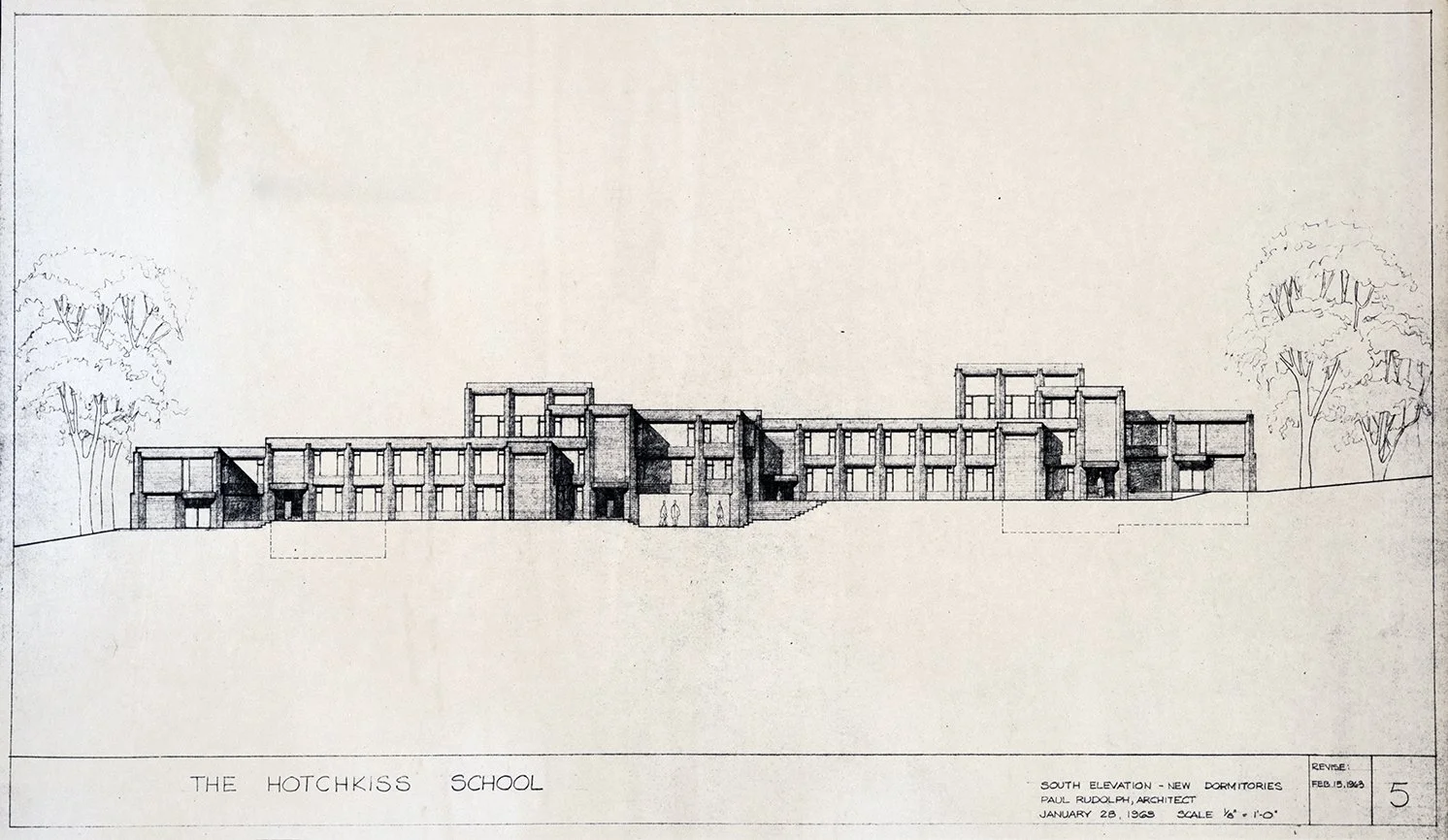 In addition to designing the Dana Dormitory building, Rudolph briefly serves as the school’s architect.