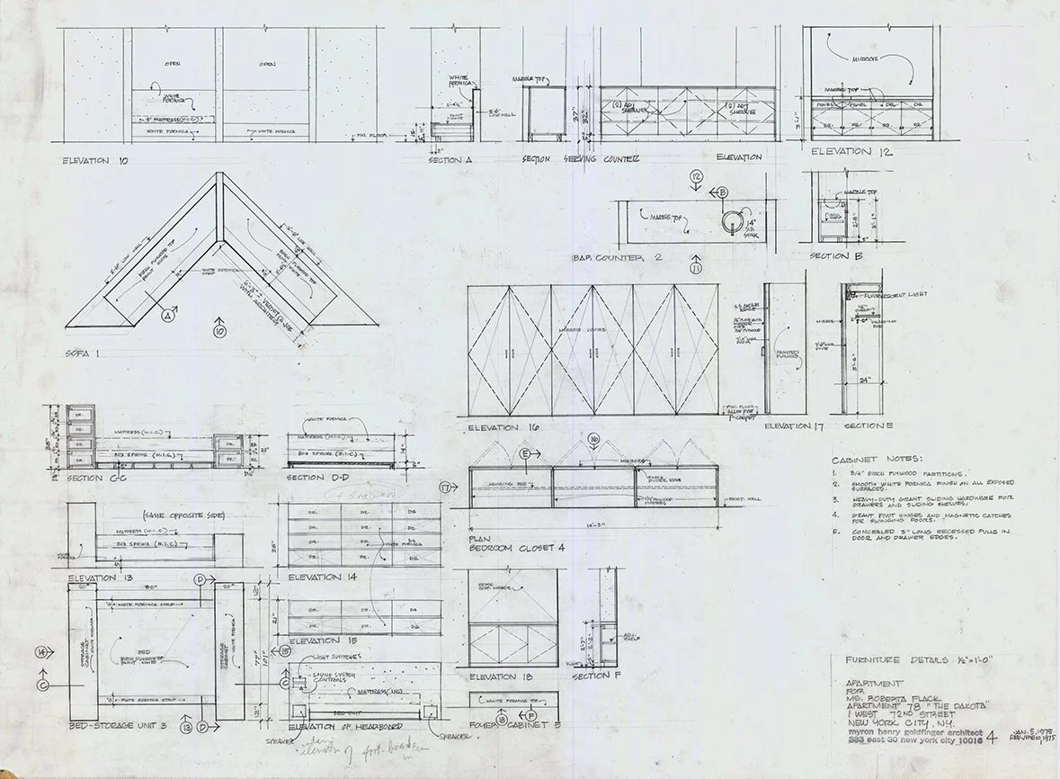 In 1985 Roberta Flack hires Goldfinger to design an alteration to the apartment to provide additional storage.