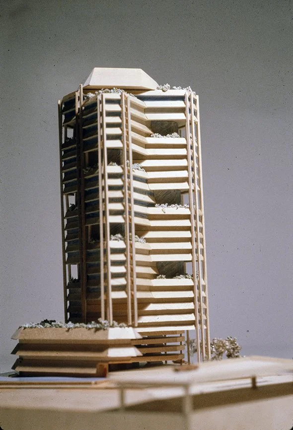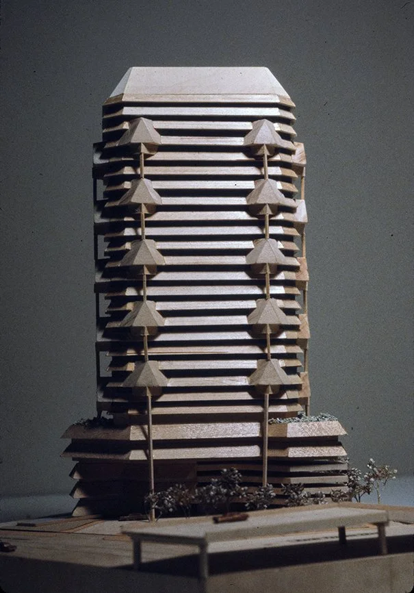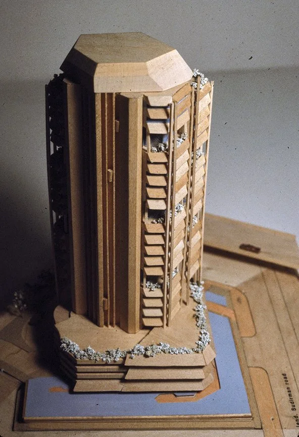 “I always see the site. Of course I went there. I did an interesting thing, at their suggestion, as a matter of fact. I told them that I wanted to get as clear an idea of vernacular architecture in that part of the world as possible. They took me to some villages nearby, but they also took me to a tourist park that had built about twelve structures from the Indonesian islands. They are very distinctive architectural types. New Guinea is very different, of course, from Sumatra, and very different from Bali, and so on. They’re all a little bit corny and you could tell what was supposed to be there and what wasn’t. It wasn’t perfect. I knew these things from photographs because I’d also done a little research. I had known certainly some of them but not all of them. To see them, even in their degenerated forms in a tourist village, was a fascinating thing. You can always see certain things in reality. That was very instructive for me. You could see the intent; let me put it that way. Quite often the detail wasn’t as it should be. Sometimes they would fireproof things when they shouldn’t. It’s a little bit like Williamsburg; things get changed. It was very instructive to do that. After all, I could have taken six months and gone to two thousand islands or something but I didn’t have the time.”