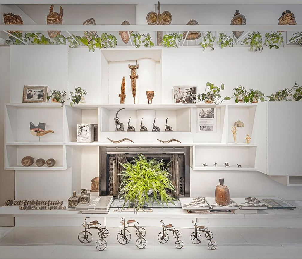 Beyond the design of the house, the stuff of Rudolph’s life is displayed throughout. The Modulightor is not one of those pristine modernist residences that lack any signs that a human might have resided there. On the living-room bookshelves, there is a model of Corbusier’s Open Hand monument in Chandigarh — a gift from the man himself. Nearby, there’s a maquette of an unrealized Picasso sculpture. A terra-cotta panel from Louis Sullivan’s demolished Schiller Theater in Chicago stands in a rear window. There’s even a Richard Serra painting that Rudolph salvaged from the trash in New Haven. But beyond the architectural artifacts and artwork, the duplex is jammed with eclectic objects, from statuary and ceramics from around the world to boomerangs, cigar molds, and shoe forms. There’s also a wall full of Voltron figurines that Rudolph bought in a moment of delight in Mexico City — then hand-painted. The duplex features a few tables that he designed; also, you can try out his surprisingly comfortable Lucite and tubular-steel chairs.