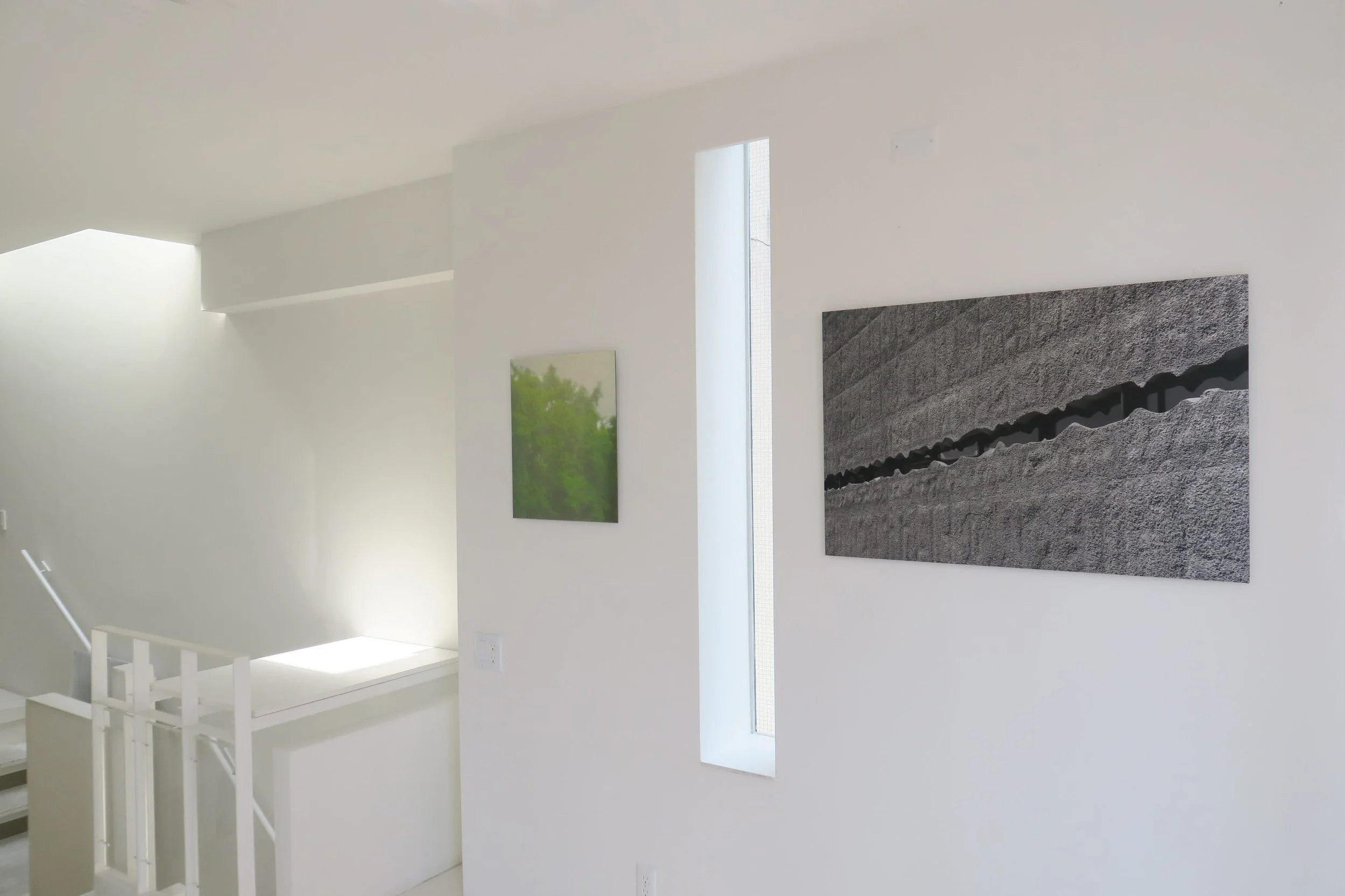 Clemence’s brushed aluminum print of light towers at Kunsthaus Baselland hanging next to Paul Rudolph’s steel sculptural staircase. Photo courtesy of the artist