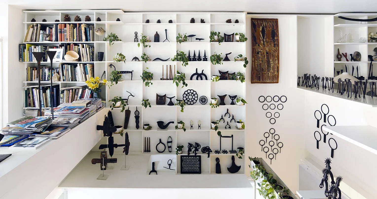 A gift from Le Corbusier, a model of his Open Hand Monument in Chandigarh, sits on the bookcase. Photo: Anne Broder