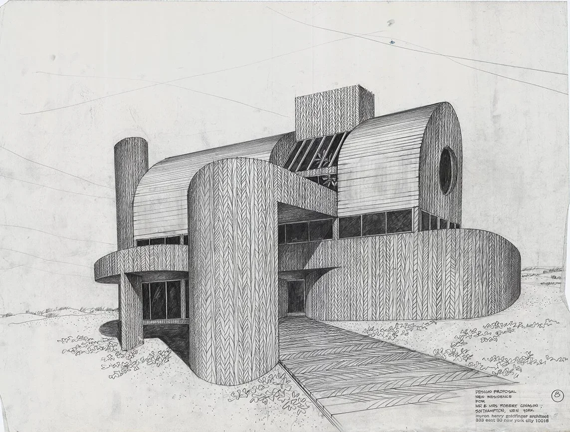 Drawing of the Conason Residence in Southampton, NY, designed by Myron Goldfinger.