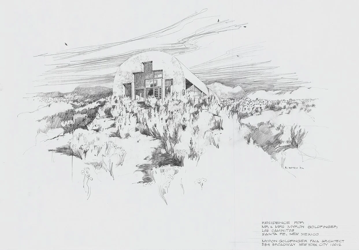 Drawing of Myron Goldfinger’s personal residence in Santa Fe, NM, designed by Goldfinger in 1993.