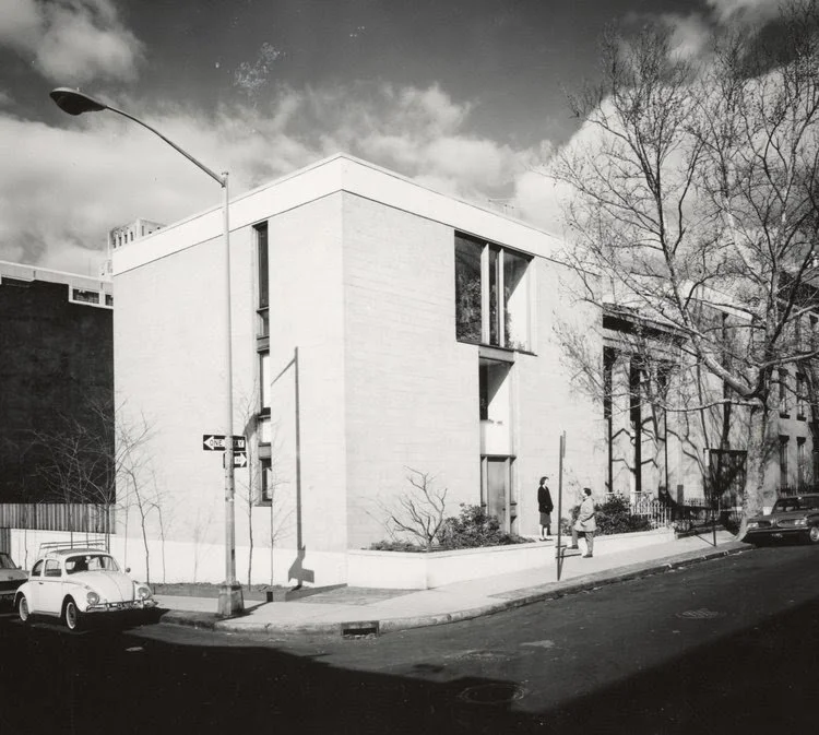 The Merzes had their architectural office on the top floor, where they continued a stream of work for a variety of clients, designing multiple homes, including one for Lindsay-administration Parks Commissioner August Heckscher, dormitories at SUNY Potsdam, assorted work for the Department of the Interior, and Dreyfus Fund offices at the General Motors Building. They also renovated the neighborhood’s Alfred T. White Community Center and designed Adam Yauch Park nearby.”