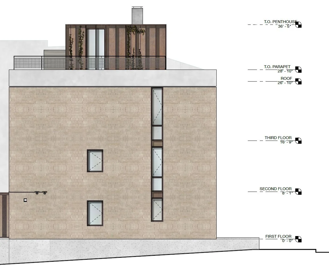 The following images are taken from the architect’s proposal for the rooftop addition submitted to the Landmarks Preservation Commission:
